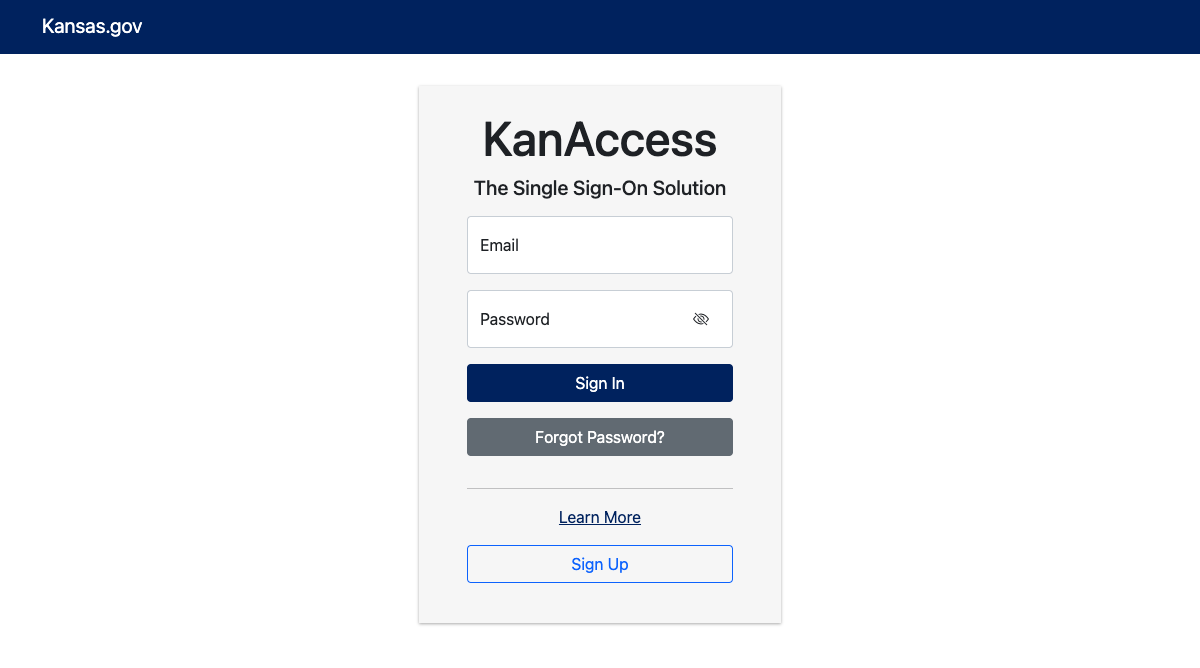 KanAccess is a tool designed to provide users with the ability to use one set of credentials to access any number of eGovernment services in Kansas.